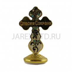 Крест "Спаси и Сохрани" на подставке, скотч, металл, эмаль; h5,5.Арт.КА-4879-18