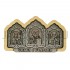 Автомобильный тройник, арочный, дерево, серебро, золочение, чернение. "Казанская, Спаситель, Николай Чудотворец", размер - 2,7*4,0 см. Изготовлено из мельхиора, покрытого настоящим серебром 999 пробы, дерево - граб, покрытый лаком. Сделано в России.