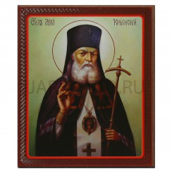 Икона ручной работы, искусственно состаренное дерево, литография, темперные краски, золочение, лак. На оборотной стороне сургучная печать с символом Святой горы Афон.