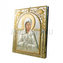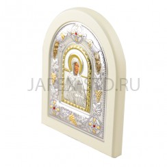 Икона - полиграфия с золотым тиснением, в деревянной рамке под стеклом. На обратной стороне иконы - молитва.