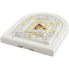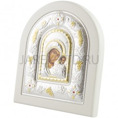 Икона "Казанская", арочная, PVD, риза металл, рамка светлый мдф, напыление серебро&золото; 12*14.Арт.И-ГР-3106WH-DX