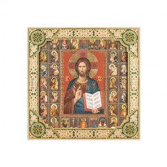 Складень "Спаситель", двойной. Полиграфия, корпус складней и основа икон изготовлены из МДФ, на внешней и внутренней стороне складня изображена молитва, с частицей ладана.