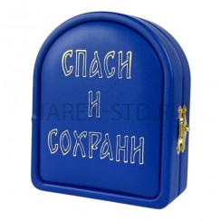 Складень "Спаситель - Казанская", синяя экокожа, полиграфия; 12*14.Арт.СК-К-1214/син