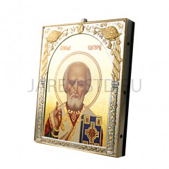 Тройной складень ручной работы, искусственно состаренное дерево, литография, темперные краски, золочение, лак.