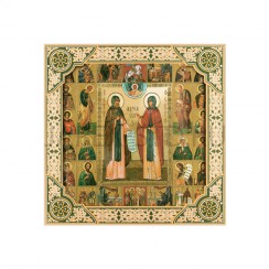 Тройной складень ручной работы, искусственно состаренное дерево, литография, темперные краски, золочение, лак.