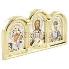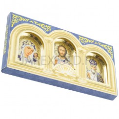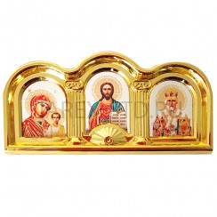Автомобильный тройник в подарочной упаковке, арочный, пластик под золото/серебро "Спаситель, Казанская, Николай Чудотворец"; 5,5*11,5.Арт.И-П-54