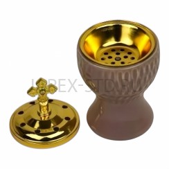 Кадильница, керамическая, крышка металл, цвет персиковый, h 13.Арт.ККМ-002