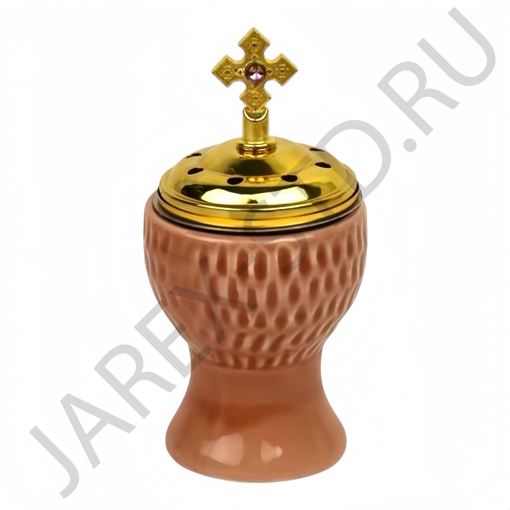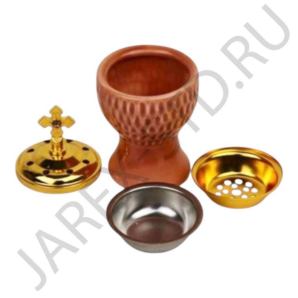 Кадильница узорчатая керамическая для ладана и угля. Кадильница необходима для возжигания ладана или благовоний . Крышечка кадильницы выполнена из металла. Кадильница используется для домашнего каждения, можно использовать в открытом или закрытом виде. На крышке и на блюдце кадильницы сделаны отверстия, благодаря которым дым от ладана будет выделяться небольшими порциями.