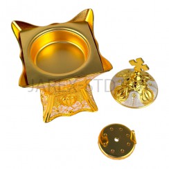 Кадильница металлическая, цвета в ассортименте, высокого качества и оригинальной формы. Безопасна в эксплуатации. Используется в открытом виде. Состоит из емкости под уголь на декоративной ножке, украшенной красивым орнаментом. Прочная ножка служит для переноски кадильницы. Высота 8,5 см. Продается упаковками из 1 шт.