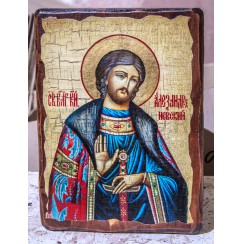 Именная нательная икона Святой Благоверный Великий Князь Александр Невский. Иконка (образок) сделана из благородного и твердого дерева - груши, пропитана маслом и церковными благовониями по нашему оригинальному рецепту. Металлическая вставка изготовлена из мельхиора и покрыта серебром с чернением. Икона создана вручную лучшими мастерами России по старинным технологиям. Изделие соответствует православным канонам и освящено.